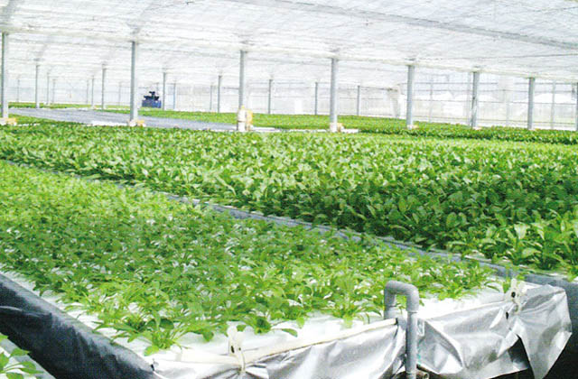 After transplanting the seedlings to the field, hydroponic cultivation using “NAPPER LAND” for leafy greens and ” KAPPALAND” for fruit and vegetable crops will be used for stable production, and the use of UV-cut film in the greenhouses will enable pesticide-free or pesticide-reduced cultivation. In addition, the use of shading, circulation fans, heat pumps, and fine mist cooling systems will be combined to control high temperatures during the summer in an integrated manner.