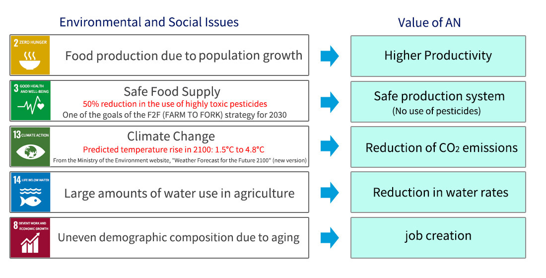 | Cultivation method | Cultivation in AN system, outdoor cultivation, cultivation in other plant factories |